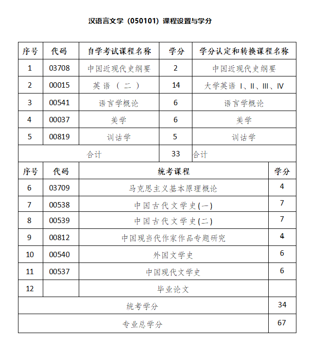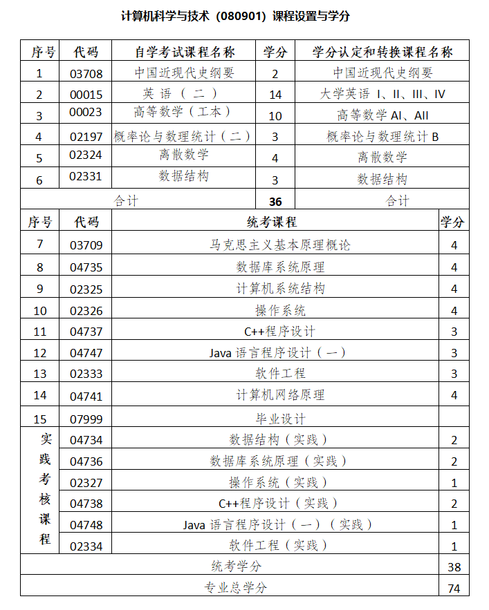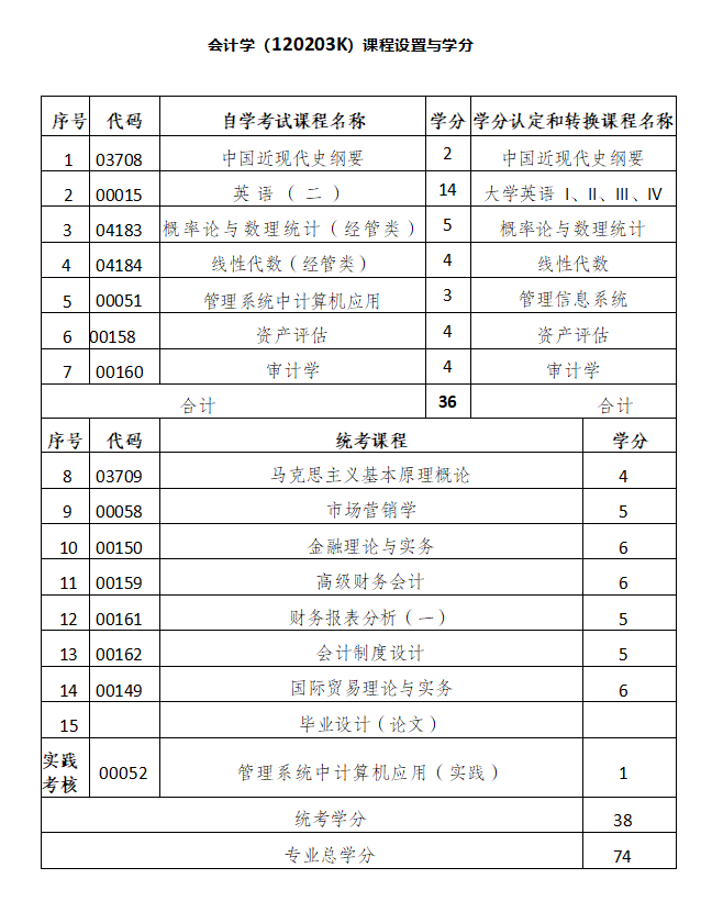 附件1:太阳成集团tyc33455高等教育自学考试学分认定和转换课程计划