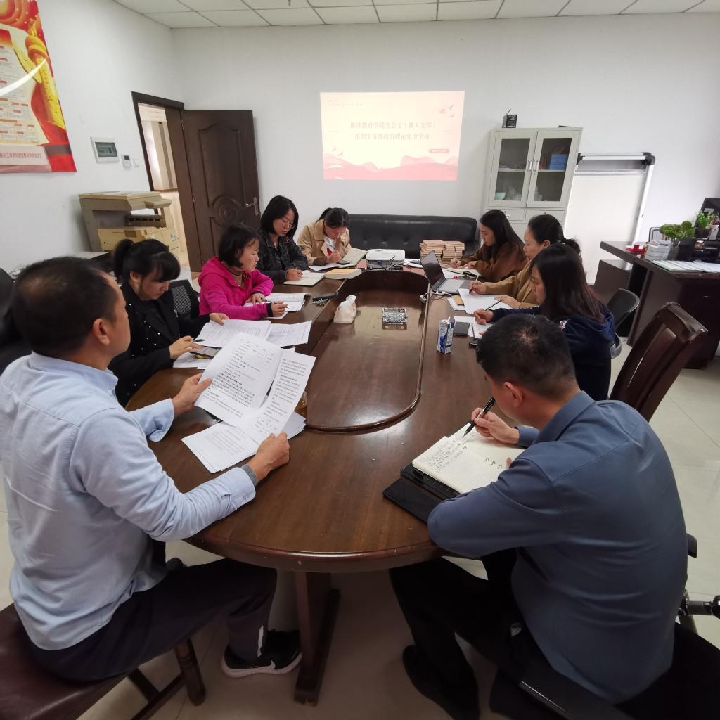 2023年11月2日下午2:40,继续教育学院党总支(教工支部)在科技楼206召开了11月第一次组织生活会暨政治理论学习会,全体员工参加。