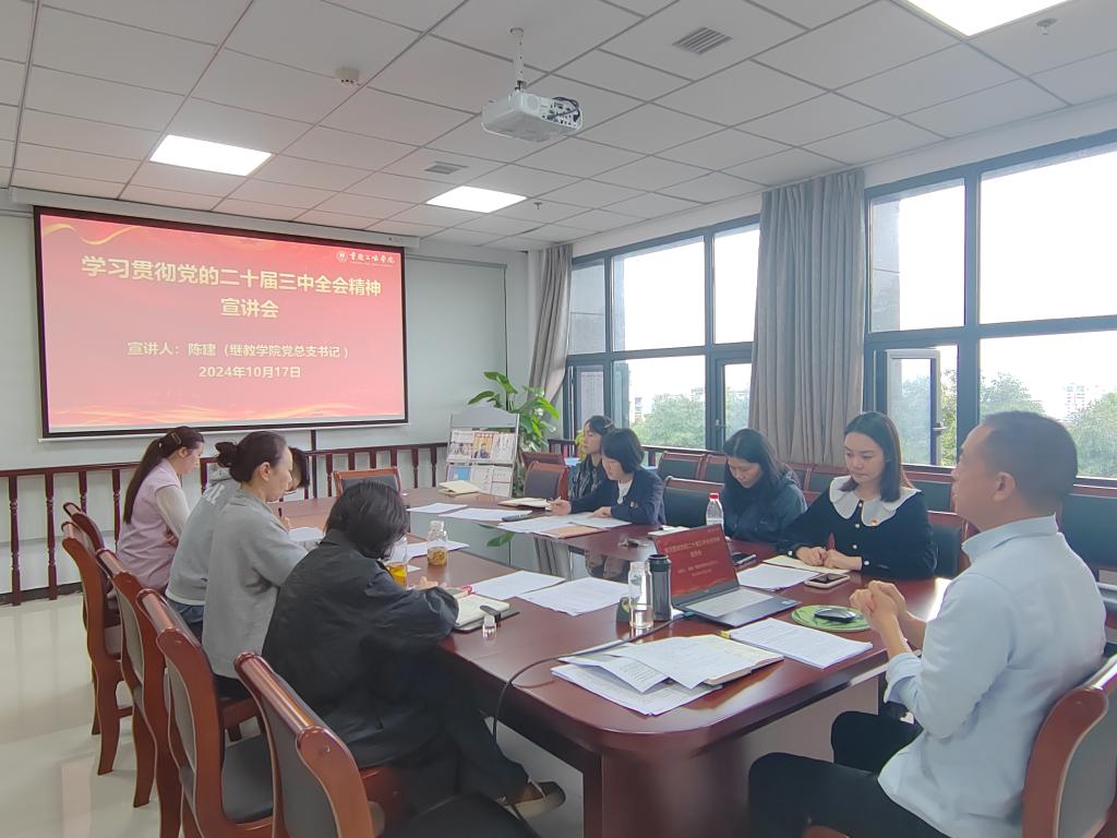为全面深入学习党的二十届三中全会精神,特别是用习近平总书记关于全面深化改革的一系列新思想、新观点、新论断武装头脑,指导实践,继续教育学院党总支于2024年10月17日在科技楼202会议室组织开展了党的二十届三中全会精神宣讲会,全体干部职工参加。
