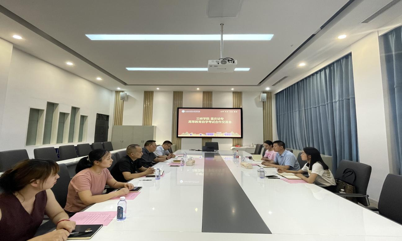 为进一步拓宽高等教育自学考试办学途径、积极推进学历继续教育稳步发展,9月6日下午,继续教育学院院长郭远臣、继续教育科科长任丹以及党政办公室相关工作人员一行3人,赴重庆幼儿师范高等专科学校考察洽谈高等教育自学考试合作事宜。重庆幼儿师范高等专科学校继续教育学院党支部书记兼院长谢贤安、学历部主任易刚、综合办公室主任王嘉宁、学历部市场拓展科科长邓胜梅等接待了郭远臣一行并开展座谈。